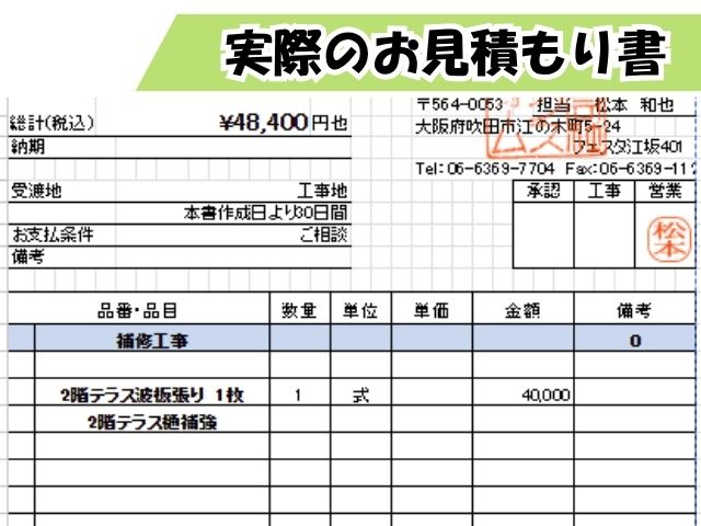 - お見積もりやご相談の際、「これも、あれも」と押し売りすることは絶対にしません。本当に必要な工事だけをご提案します。