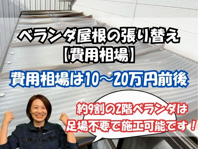 A. 吹田市では、10〜20万円前後が一般的です。素材やベランダの広さによって変動しますが、ポリカーボネート波板の張替えが最も多い事例です。