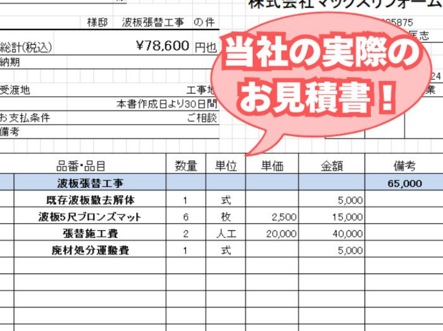 | 既存塩ビ波板の解体・撤去 | 5,000円 |