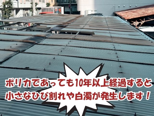 ポリカーボネートでも10〜15年、塩ビ波板では5年前後が寿命の目安。