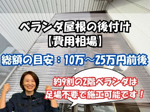 一般的な 幅3〜6mの2階ベランダ で屋根を新設する場合の費用は以下が目安です。