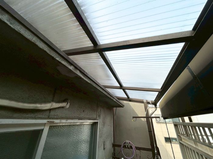 ▶【施工事例】吹田市山田東でベランダ波板屋根を1枚だけ部分交換+雨どい補強|4.8万円