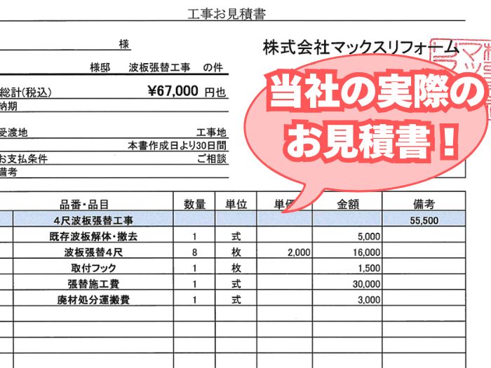 🧾 実際の見積書を見てみよう(波板張替え工事の事例)