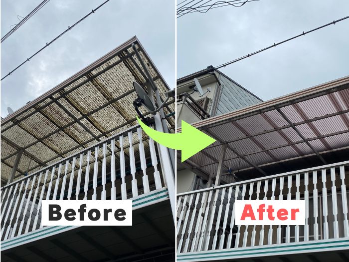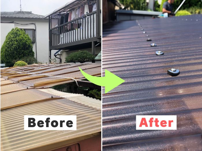 ▶︎ 長年の使用で劣化した波板屋根の張替え作業の流れを動画で見てみましょう