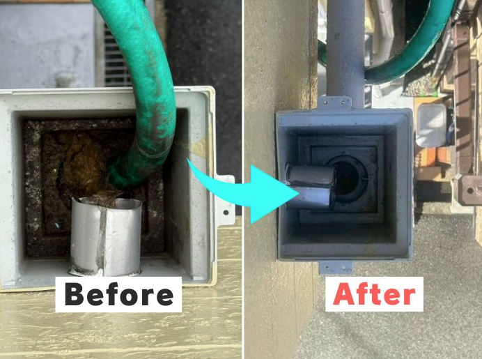 また、見落とされがちな集水器(雨樋)の詰まりも解消できたことで、今後の大雨でも安心してご使用いただける状態になりました(*^-^*)