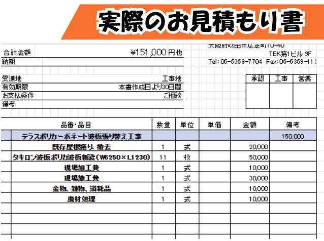 一部破損でも放置すると広範囲に被害が拡大するため、タキロン製ポリカ波板への張替え工事をご提案し、後日正式にご依頼いただきました!