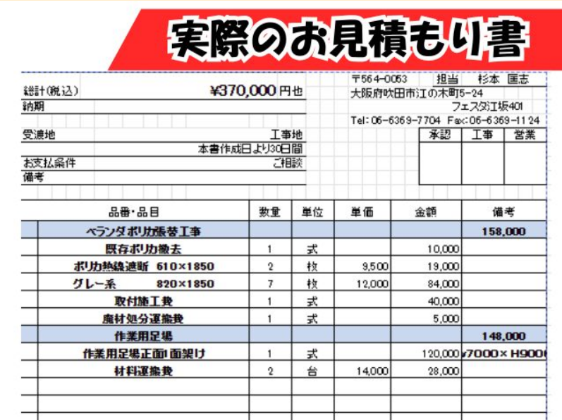 「まずは見積もりだけ見たい」というご依頼でしたので、無料調査後に写真付きの見積書をそのままお渡ししました。