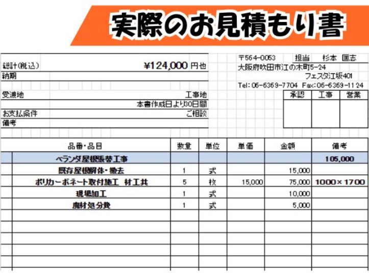 | ポリカーボネート取付施工(材工共) | 75,000円 |