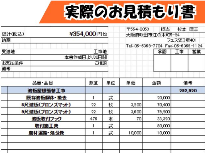 | 新規ポリカ波板 9尺(22枚) | 79,200円 |