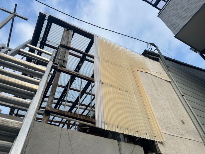 吹田市片山町で黄ばんだベランダの波板壁を紫外線カット素材のポリカに交換!|4万円